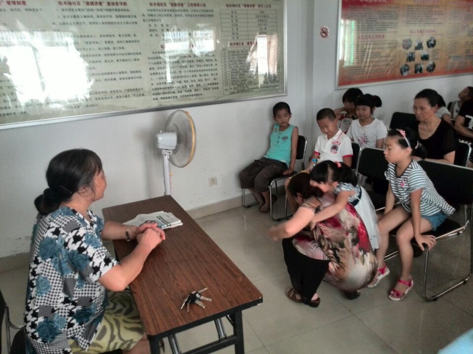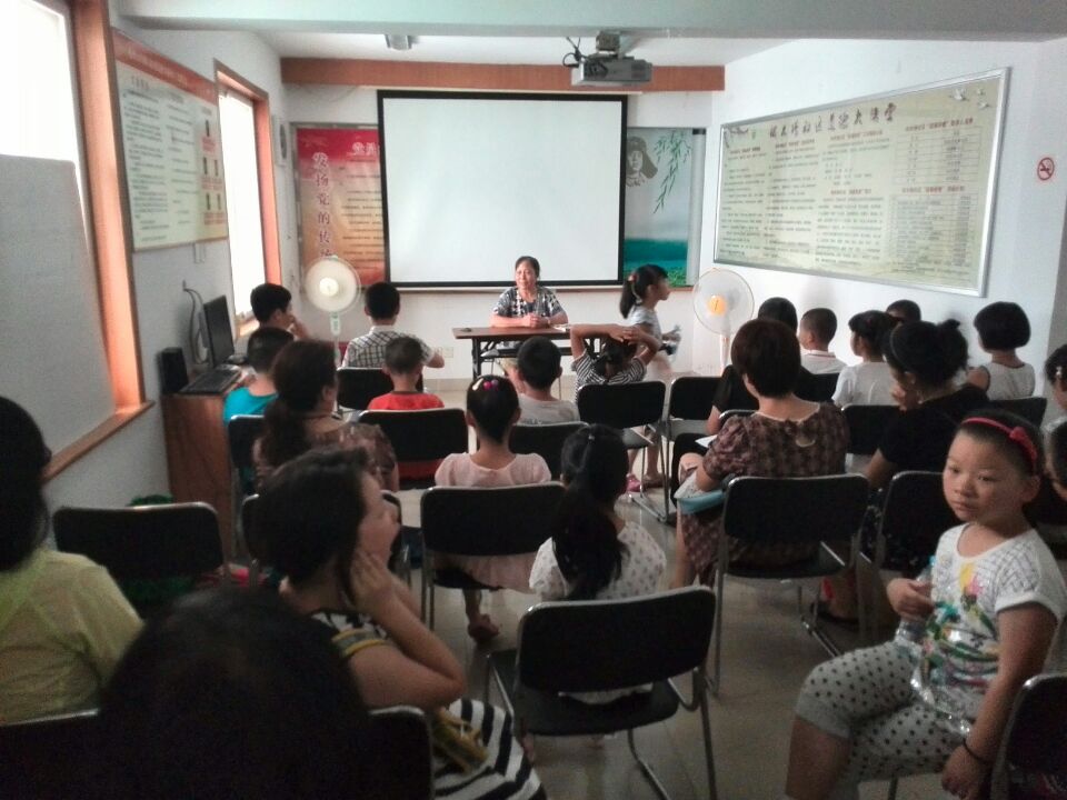 今天的活动是青少年讲座,主题是“让人生焕发绚丽的光彩”。他们将这个讲座与社区开展的暑期青少年活动融合在了一起,并为之做了相当充分的准备。在活动开始前,队员们代表社区联系了平海路上一所学校的一位老教师,请她担任孩子们的讲座主讲人。而她在听说社区的来意之后也非常乐意的答应了,这为他们的活动开了一个好头。讲座的主题是由老教师自己定的,而队员们也认为这个主题“让人生焕发绚丽的光彩”对于这些茁壮成长中的孩子们非常合适。之后在社区方面的帮助下,他们将活动的时间地点等信息发送给了各位参加社区暑期青少年活动的孩子及其家长。紧接着队员们向社区借用了一个活动室,摆放好桌椅,便等着讲座的开始了。