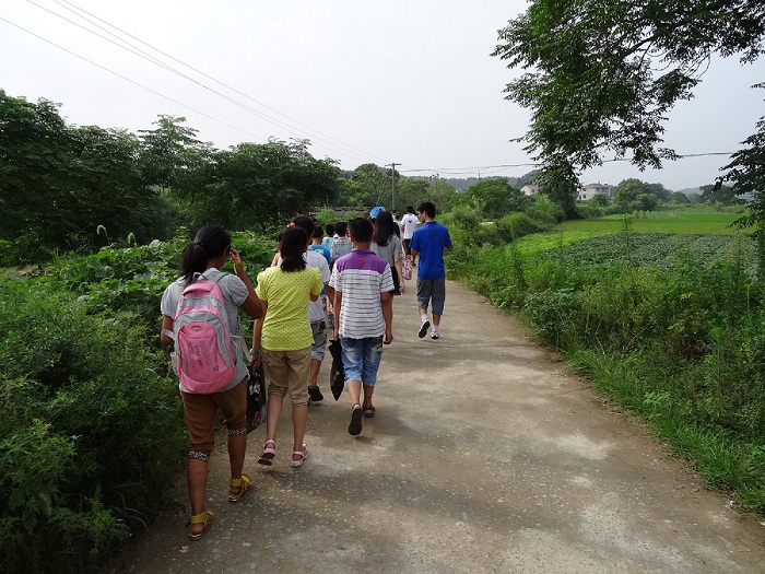 为了更好地了解当地的民风民俗,也为了更好的开展对孩子们的教学工作,支教队员们在征得孩子同意的情况下,借着每天送路队的机会到孩子们的家里进行家访。孩子们总是争先恐后地拉着支教队员走进自己的家门,家长的热情也着实让支教队员们难以推却。通过交谈,我们逐渐了解到,学校的学生基本上都是留守儿童。在离家较远地方——例如浙江、广州等地——谋生的父母,只会在年关回家,一过元宵,又纷纷外出。在家乡周围的镇、市工作的父母,则在平时也有回家的机会,有些也会把孩子带到身边生活一段时间。父母不在家,抚养教育的担子自然落到了爷爷奶奶身上。村子里有限的资源使得孩子们的课余生活相当贫乏。在完成课业和农活之后,大多数孩子只能坐在电视机前或者在山间与同伴玩耍。针对此现象,支教团队和学校合作建立了流动图书馆,由支教团队提供图书,由校方负责图书的管理。
