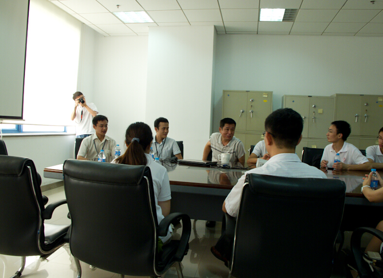 此后,已在701研究所工作的浙大学长加入实践团,和李老师一起进行了交流会谈。机械学院团委副书记闫小龙首先详细介绍了浙江大学的机械学院科研情况,对于701研究所的热情接待表达了感谢,然后实践团集体成员一一介绍了自己的研究方向。李老师又对701研究所现状做了介绍,双方都有了大致的了解。身在701研究所的浙大学长们,看到母校团队的参观也倍感亲切,向师弟师妹们详细介绍了自己在所内生活、工作情况,鼓励师弟师妹们用知识武装自我,献身国防。接着,701研究所的招生部门的工作人员,就保研军工,军工读博等对实践团做了政策解析,殷切希望实践团硕士成员博士就读701,并发给了相关资料作为参考。整体的交流会期间的时间持续很长,气氛却一直很活跃,期间大家就国防现状、船舰骄傲、航母未来、择业就业、母校回访、浙大招生等等的话题探讨颇丰,着实增强了实践团成员对国防军工这份伟大事业的热爱。
