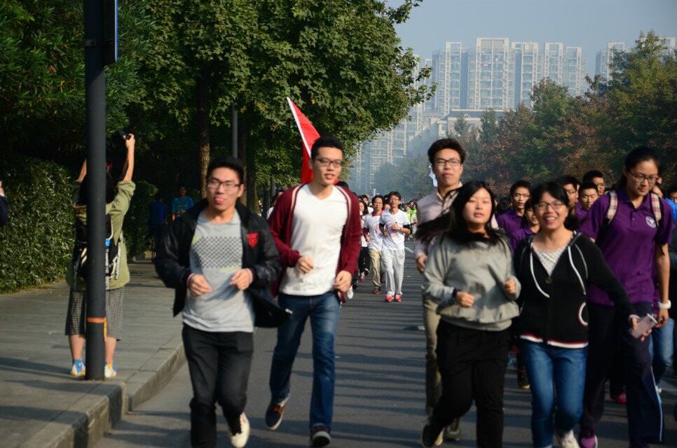 当天,在班长、团支书的组织下,同学们克服了早起的困难陆续抵达紫金港校区,按时参加了一年一度的校运盛会。早上8:30大家在领队的带领下踏上了万人长跑的征程,从田径场绕紫金港校区而行,沿途晨曦拂晓,鸟语花香,更有各色社团载歌载舞。“百年机械,坚持不懈!劈波斩浪,激情不灭!”是我们的响亮口号,这口号迸发出强烈力量——它象征着机械人拼搏的身影、实干的作风和勇敢的内心,所到之处,它总是让沉默的人群沸腾!