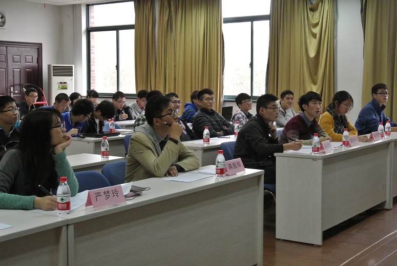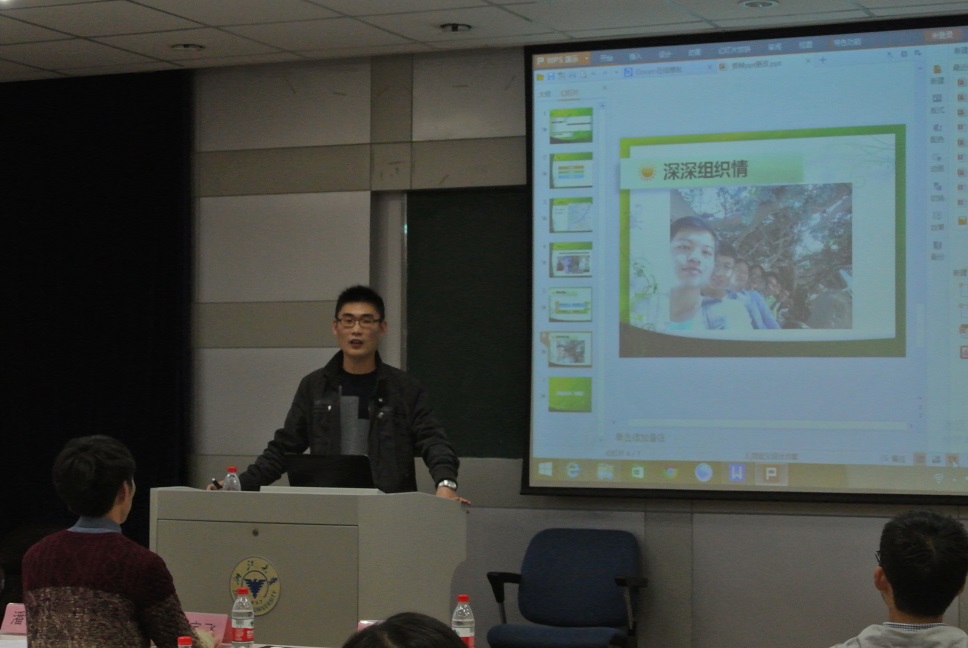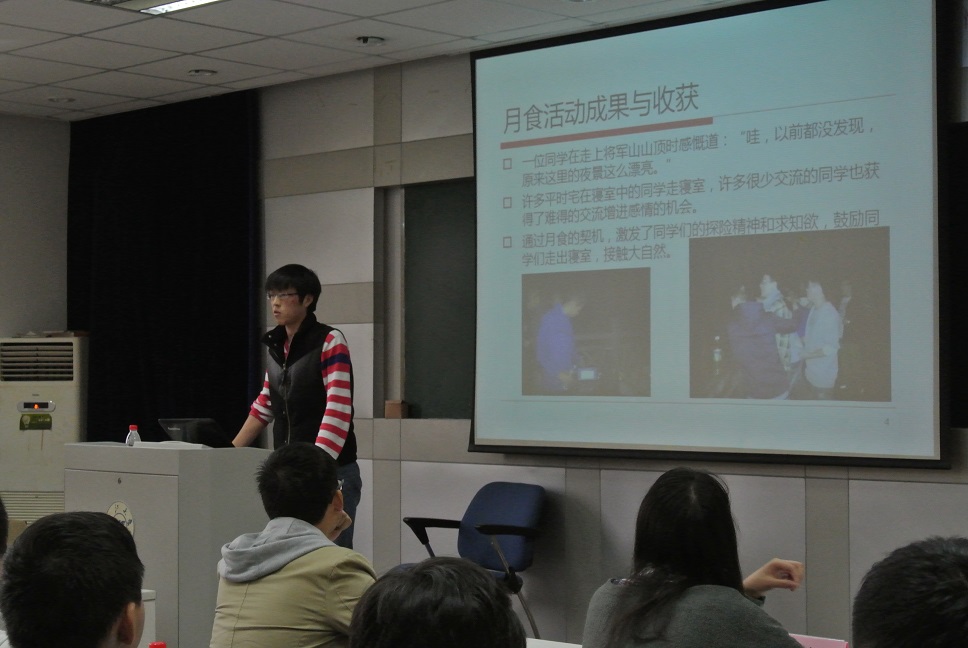 答辩会于下午1点半正式开始,分3部分,分别是11级本科生、12级本科生和研究生博士生的答辩。各个答辩人在规定的时间内从活动主题、活动内容、活动形式、参与人数、新闻宣传等方面对自己所在团支部举办的团日活动进行了介绍和展示,有的甚至还制作了视频。答辩过程中,霍柄昆老师不时进行点评和提问,指出不足和给予肯定。答辩过程中时不时传来笑声,现场氛围轻松愉快。