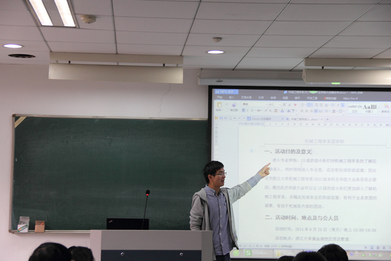 2014年11月29日上午,浙江大学机械工程学院本科生团学联第一次办公软件培训在西一教学楼309正式举办。培训会上,为团学联干事做培训的同学各自从自己的知识基础出发,以自身的经历作延展,给到场的干事做基础扎实且案例生动的办公软件培训。到场的干事们也认真听讲,详细记录,然后在自身思考的基础上积极提问,为整场培训奠定了热烈的氛围。