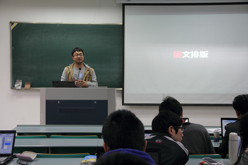 上午8点30分,培训正式开始。活动主持人团学联办公室部长王禅童先是感谢到场各位的支持,并强调了在以后的团学联工作中以及今后的学习生活过程中,一些基本的办公软件操作都是必要的基本技能,是我们学习工作的加分项。接着就是第一位同学——团学联宣传部叶张昱同学为干事们做PPT培训。叶张昱同学先从图文处理讲起,从图文排版讲到了风格样式,说明PPT流畅的切换会带来意想不到的结果。其次介绍了参考线、网格的辅助性,并用自己曾经做过的例子说明了线条的把握以及自定义路径控制的重要性。最后讲到了PPT的作用是辅助主题的阐述,最重要的还是为了主题,同时还延伸到我们的平时日常工作,说明一切工作都要有明确的目的性。