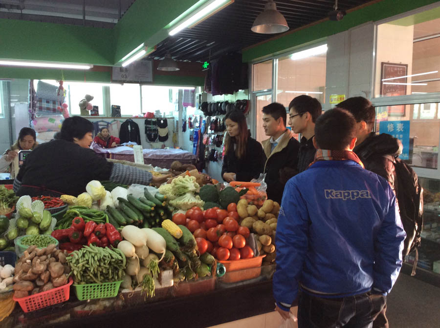 图注:同学们在农贸市场买菜