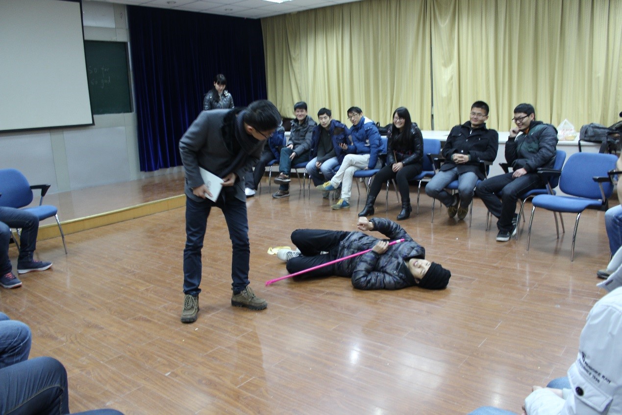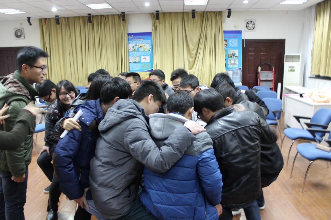 身为机械工程学院机制1301硕集体的一员,我们在这个温馨的集体里同样有一份责任。为了让大家更好的体验集体中的责任,紧接着集体玩第二个游戏“集体人椅”——所有的成员围成一圈,每位成员都将他的手放在前面的学员的肩上;后每位成员徐徐坐在他后面成员的大腿上。在轻松愉快的氛围中,大家共同喊出集体的口号:“齐心协力、坚持到底”。这么多的人一块做游戏,如果有人稍微松懈,少点儿劲,“人椅”是绝对建不成的,相反大家可能会一起摔在地上。同样在集体工作也是一样,作为团队的一分子,每个人都应该贡献自己的最大力量去帮助团队工作,也只有这样才能达到个人利益和集体利益的统一,使得大家都获利。