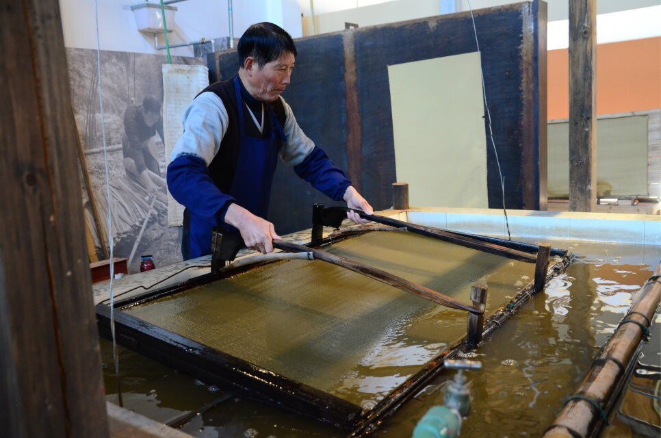 图注:手工艺人现场展示造纸工艺