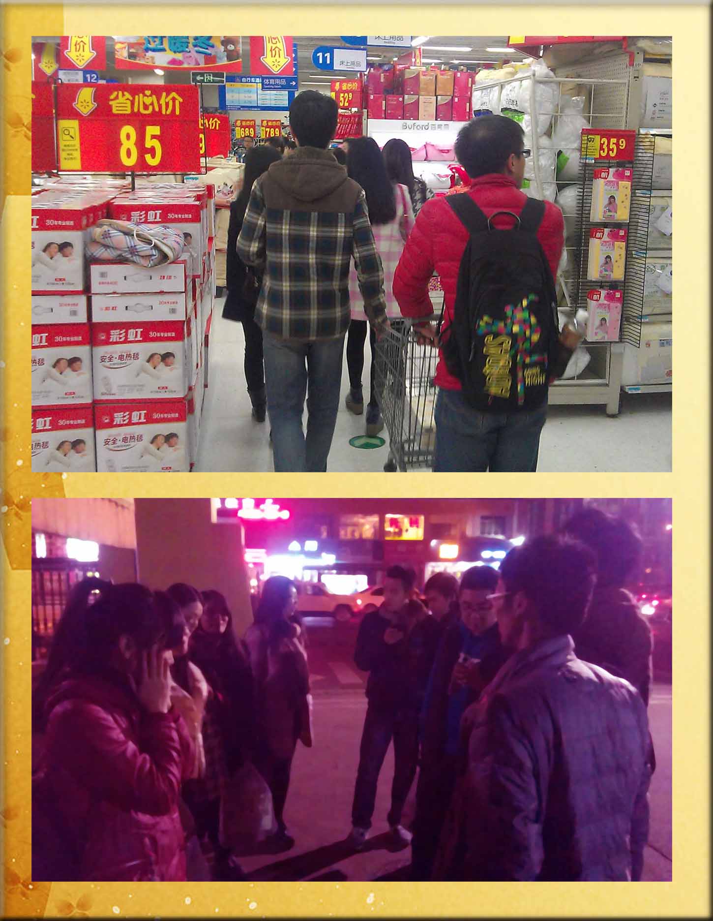 饭局结束,意犹未尽的我们怎能就这样草草结束我们的联谊历程。跟在妹子们后面逛了大半天的超市也许也将是不久的将来我等机械男儿的真实生活写照。想想虽是有着些许的凄惨,但是现场陪着妹子们看着那“12+6”的Durex也是别有一番风味呀。