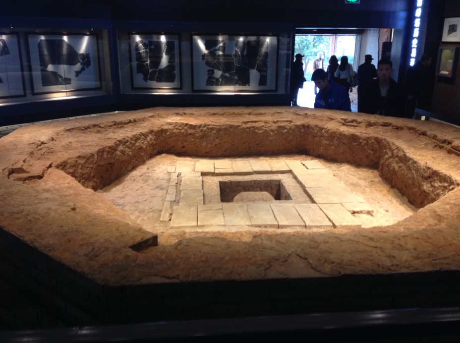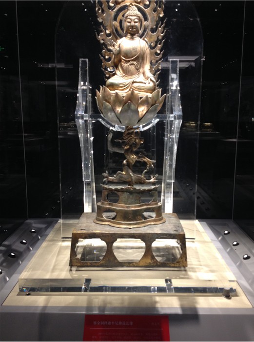 参观完陶瓷馆,我们又去参观了旁边的雷峰塔遗址馆。雷峰塔遗址馆陈列了雷锋塔倒塌后的遗址以及雷峰塔地宫中发现的很多文物,包括有鎏金莲座青铜蟋龙佛像、铜镜、玉供养人等。