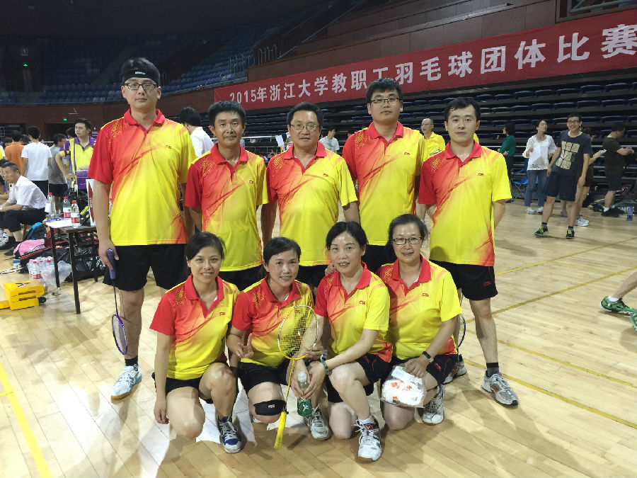 2015浙江大学教职工羽毛球团体比赛于6月12日~ 13日晚上在紫金港校区体育馆举行,本次比赛一共有42支球队组队报名参赛,无论是参赛队伍的数量还是实力都超过了往年。我们机械学院的羽毛球爱好者也踊跃报名组队参加,最终派出了9位老师参赛。