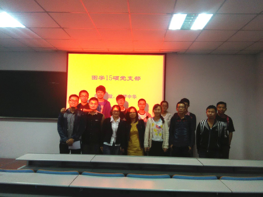 图学15硕党支部成立于今年9月份,现有共产党员14名,预备党员1名,入党积极分子3名。为纪念抗日战争70周年,党支部特举办“勿忘国耻,圆梦中华”系列活动,学习和实践抗战精神,坚定为祖国崛起不断奋斗的理想。