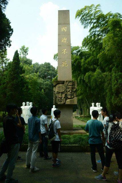 中午1点左右,我们来到了辛亥革命烈士纪念馆。阴阴郁郁的花草,参天蔽日的大树,它们也许不懂,因为它们只是在静静的站着;但他们也许全都懂,只是在肃穆的站在这里,用隐隐抖动的叶子来向我们述说着当年惨烈却又悲壮的故事。