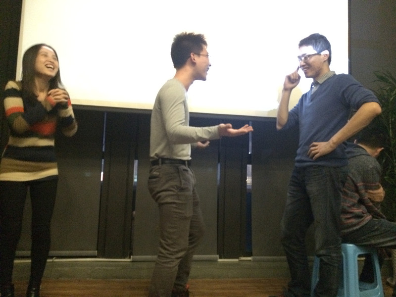 最好玩儿的属于“比划猜词”游戏,富有表演天赋的同学们,让人忍俊不禁,更有机智过人的同学,单单凭几个动作,就猜出了“广播体操”、“眉来眼去”等四字成语,让人印象深刻。