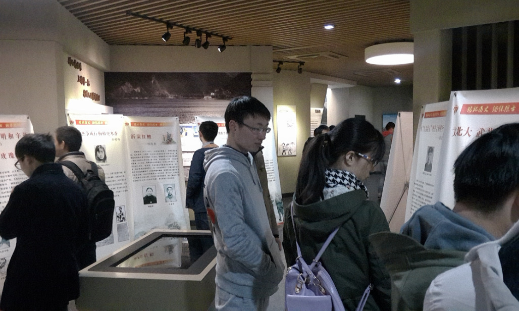 然后,我们一行人开启了红色之旅的第一站——纪念抗战胜利70周年主题图片展。2015年是中国人民抗日战争胜利70周年。今天,大家重温抗日英雄们的伟大事迹,不时停下脚步驻足在英雄的跟前,领略他们当年的精神,也有同学们忍不住交流起来,言语中充满对英烈们的敬佩之情。