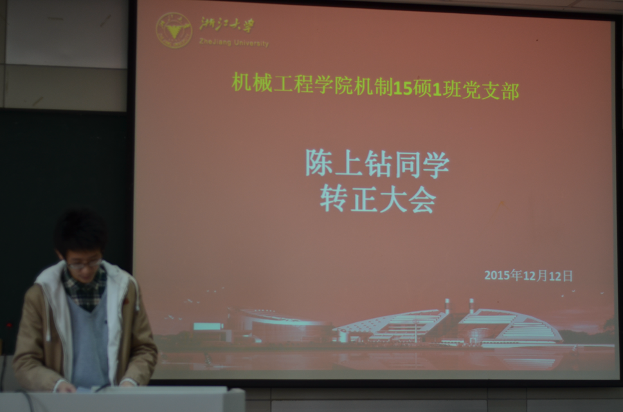 紧接着,党支部副书记饶成晨代表机制15硕1班党支部全体党员对陈上钻同志成功由预备党员发展成为中共正式党员表示了衷心的祝贺,并鼓励陈上钻同志勇攀高峰,继续努力全心全意为人民服务,争做一名优秀的党员。
