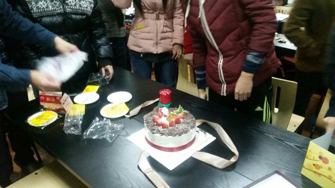 晚会的结尾,“暖男”团支书王凯征同学充满“文艺”的结束语,让这次晚会深深的扎进了每一位同学的内心,一个小小的蛋糕,给我们每位同学送上了来自班级最最温暖的新年祝福。