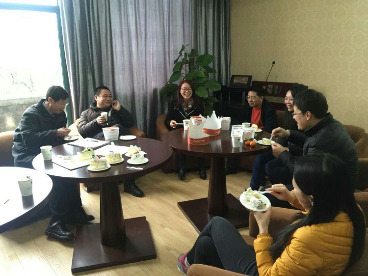 生日聚会上,李书记首先向各位“寿星”表达了生日的祝福,送上了甜蜜的生日礼物——巧克力。接着,来自不同研究所和中心的寿星们进行了自我介绍,虽然大家都是同一学院的,但因为平时工作忙碌,办公场地又较为分散,所以老师们也借此机会进行了相互认识和交流,从陌生到相识。伴随着生日歌的响起,生日蜡烛的点燃,“寿星”们许下了愿望,并一起吹灭生日蜡烛,共同切开生日蛋糕,接受了来自学院的温馨祝福。