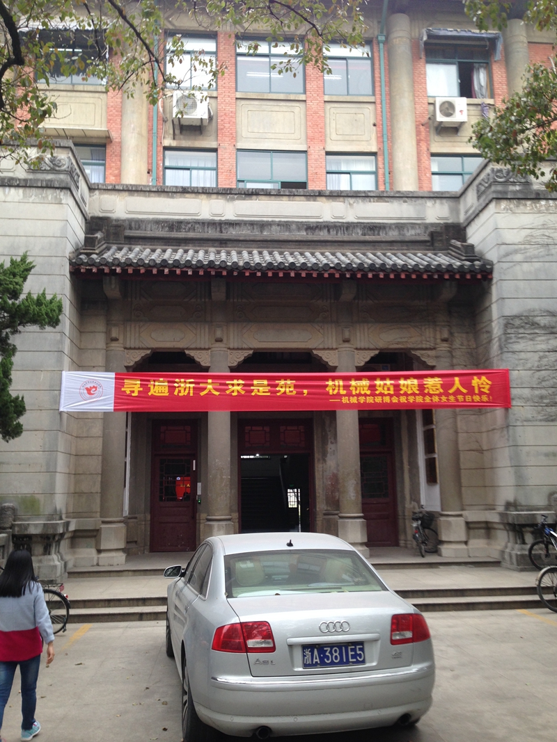 校园内的节日氛围十分浓郁,各院都拉起了祝福横幅,机械学院自然也不甘落后,教一大楼门前,赫然挂着一幅醒目的横幅:“寻遍浙大求是苑,机械姑娘惹人怜”,为全体女生送去节日问候。