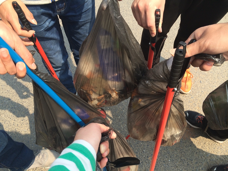 此次,中心共组建5支毅行分队近30人,沿不同线路开展毅行。毅行线路途径西湖边上的多处标志性景点,同学们身着志愿者马甲,手持便携夹具和垃圾袋,沿路拾拣游客丢弃的塑料袋、烟头等垃圾。在毅行的同时,他们的环保行为也感染着周边的游客们,一起加入到保护杭城环境的活动中来。周瑞剑同学所带领的毅行分队途径老和山-将军山-灵峰山-锅子顶-北高峰-灵隐寺,在实践的过程中,有两位小朋友对志愿者所持的工具产生兴趣,帮助志愿者们拾拣沿路的垃圾。他们可爱的举动引起了路人的阵阵欢笑,也为队员艰苦的毅行之路平添了几分惬意。