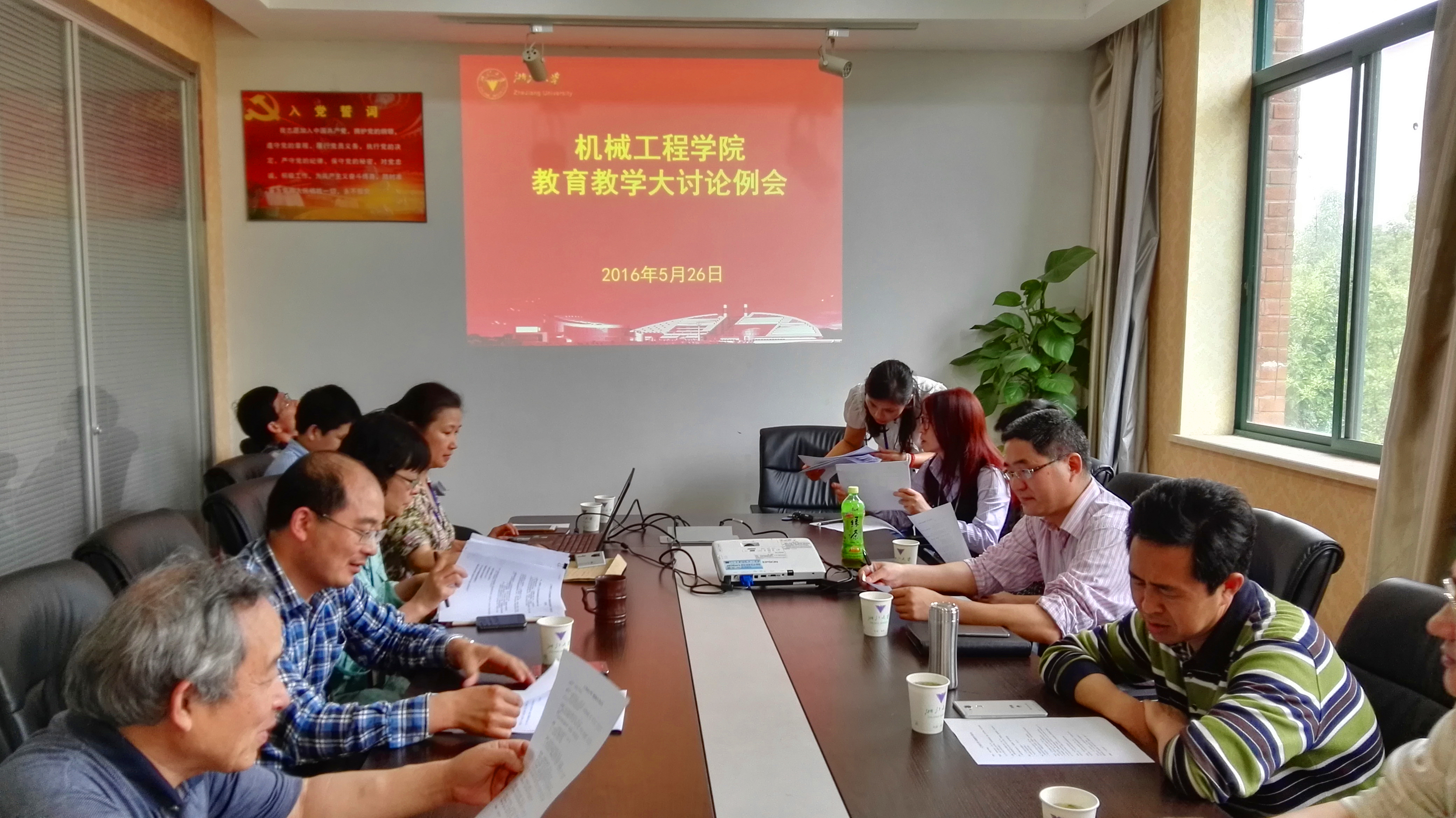 2016年5月26日,机械工程学院关于《工程设计学》课程的教育教学大讨论在教1-340成功举行。会议由学院分管教学副院长杨灿军教授主持,学院教学指导委员会部分委员、教学办及设计专业老师参加了此次会议。