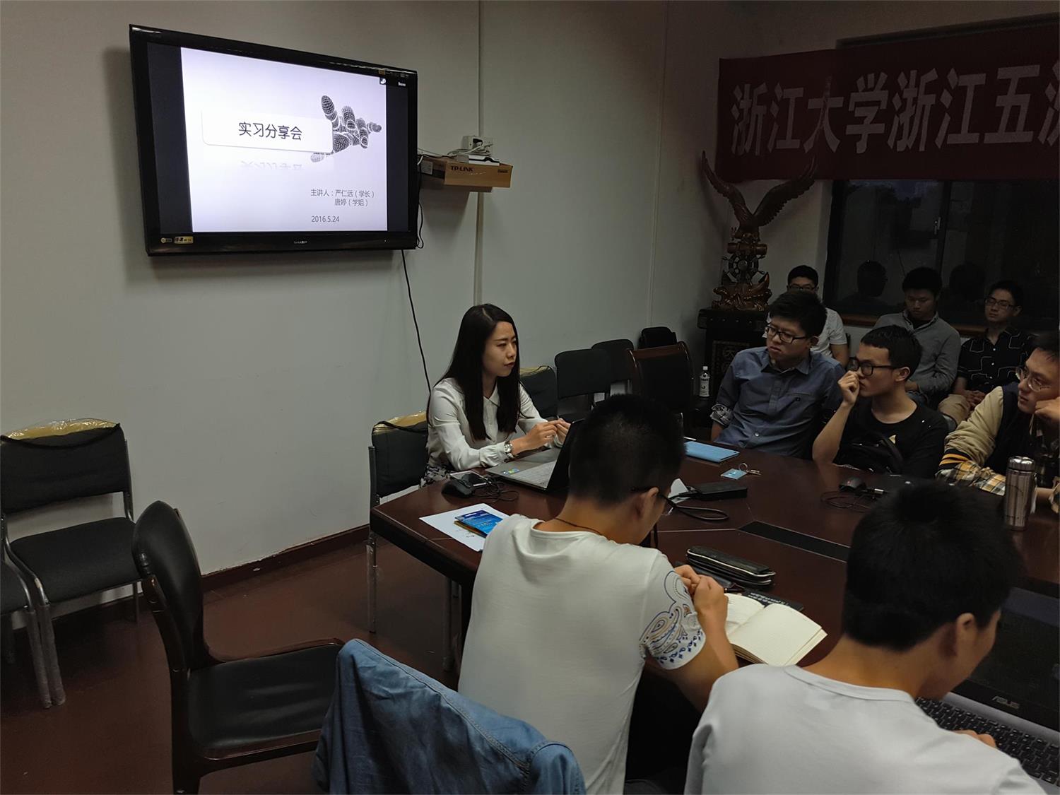 在团支书对于分享人进行了简单的开场后,现场便交给了学长学姐。唐婷学姐本科就读于同济大学,研究生阶段保研至浙江大学。她对于如何看待实习过程中的杂活、如何选择合适自己的实习岗位等问题进行了说明。基于其先后在两家大型外企中的实习经验,唐婷学姐建议我们针对自己的发展方向(深造、就业等)来选择实习工作,分享中干货满满。