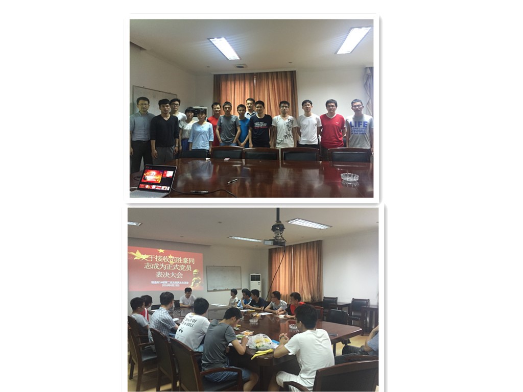 机制硕1402党支部于2016年6月23日晚上6:00在现代制造所3楼会议厅召开了关于接收范胜豪同志为正式党员的支部大会和以两学一做之学习习近平总书记系列讲话为主题的民主生活会。本次会议由1402硕班党支部副书记卢伟江主持,同时支部书记何闻老师也出席了本次会议。