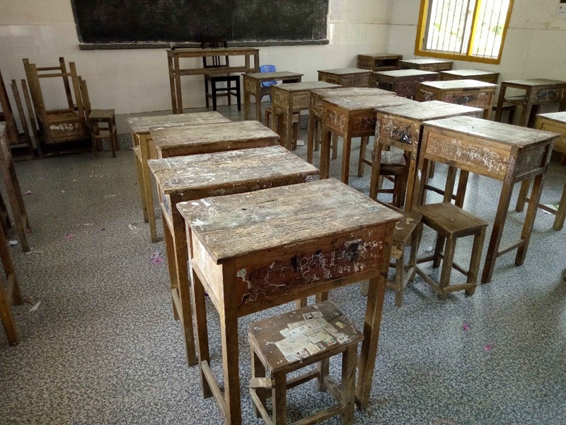 多宝乡金沙小学是一座村镇小学,服务周边的三四个村庄。尽管规模不小,但是教师资源和硬件资源十分稀缺。小学只具备一方小操场,教室简陋,桌椅破旧不堪。教师资源的稀缺更是严重,包括校长在内的六名老师却负责整个小学唉人的全部教学任务,十分繁重。