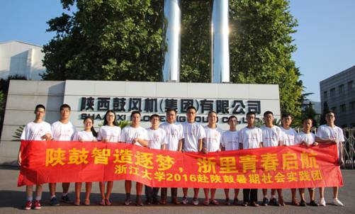 借助良好的实践平台,浙江大学组织开展了主题为“青春公益,美丽中国”的系列实践活动,并首次采取“PTPA”公益项目模式, 即通过一名教授,带领一支学生团队,实施一个公益项目,完成一项公益成果。2016年7月31日,浙江大学赴陕鼓社会实践团在纪杨建教授和团委书记项淑芳老师指导下,由彭涛老师的带队,赴陕鼓集团开展为期两周的社会实践。实践团队采用“1+X”的实践方案,开展陕鼓产业转型升级调研,并参与企业三项前瞻性课题研究。通过实习实践,锻炼提升,增长才干,同时也帮助企业发现和解决实际生产中存在的一些问题,助益陕鼓发展。