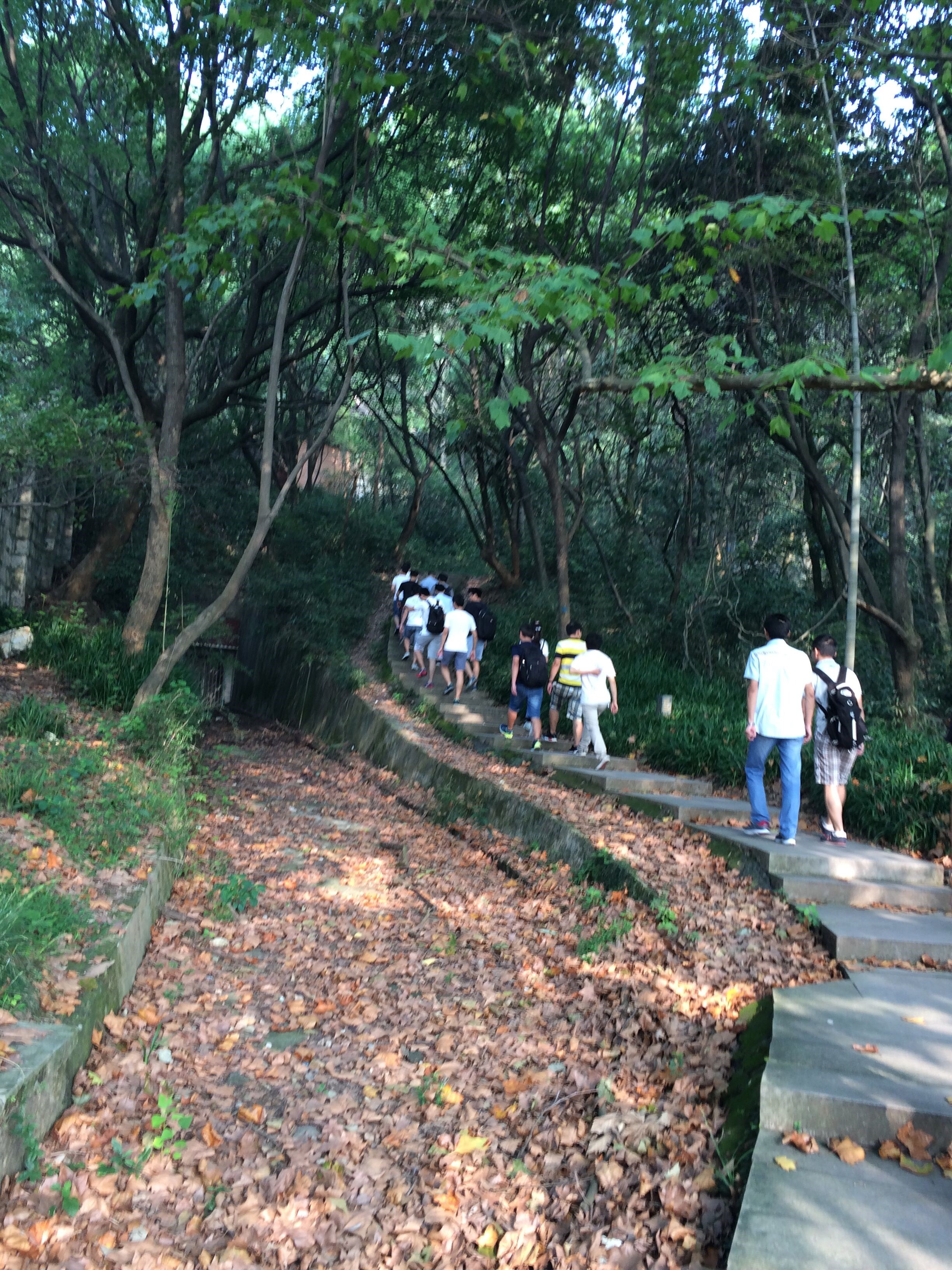 通向老和山山顶的路是由人工修建的水泥台阶一级一级组成的,两旁长满了植物,充满着生机。上山的路虽不算陡,但也让一些同学感觉体力有些跟不上,这是平时缺少锻炼的表现,也让大家意识到今后要积极参与到体育运动当中去,增强自己的身体素质,拥有一个强健的体魄才能更好地做科研。