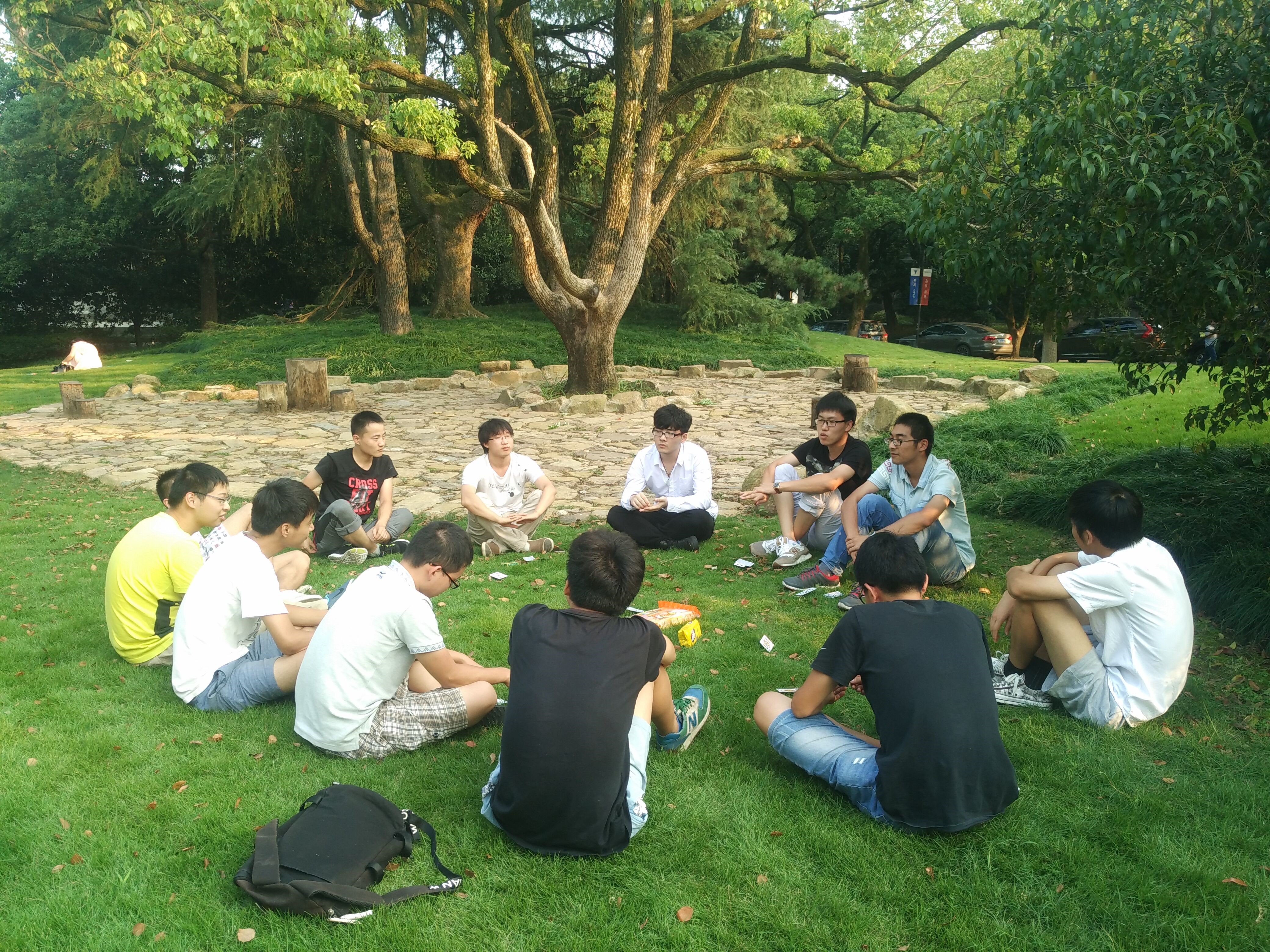 午饭过后,一些下午没有安排的同学继续参加班级活动。在校内的草坪席地而坐,感受秋季午后的凉爽。玩玩桌游,在游戏中增进同学情谊。游戏之余,谈谈开学后各自的感受,轻松的气氛令人愉悦。