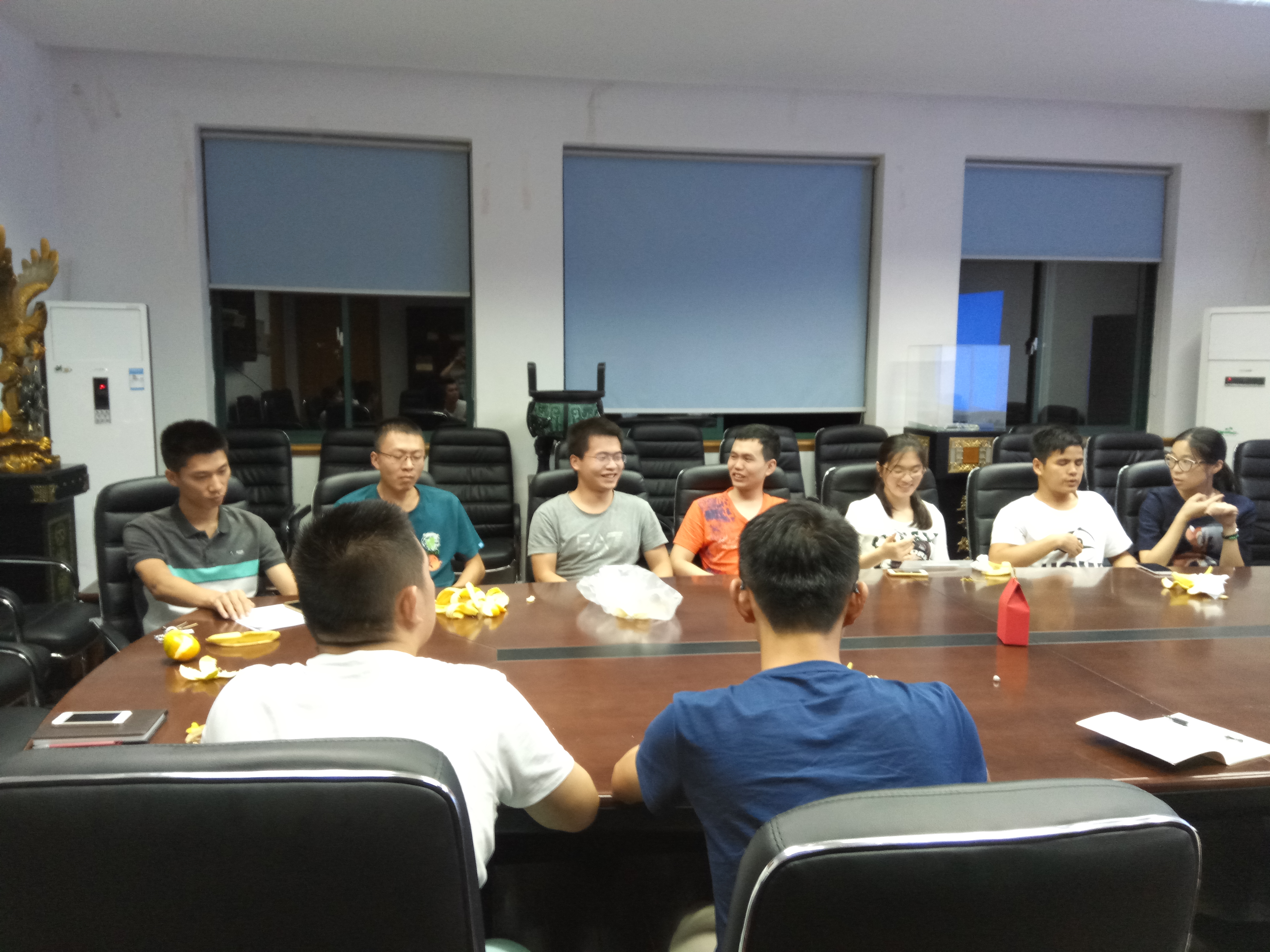 晚上七点,同学们带着满脸喜悦的表情来到了教一四楼会议室,由于大家好久都没见了,见了面都会聊会天,讲讲暑假的生活,仿佛我们又回到了小学的生活,但会议还是在19点如期开始。