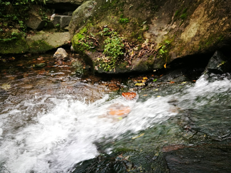 当身边白墙青瓦的建筑散去,平稳深沉的石砖路变成了恣意排列的碎石路,我们也从村子尽头来到了九溪。何为九溪?明末清初文学家张岱说“其水屈曲洄环,九折而出,故称九溪。”溪下又有十八涧,故又称九溪十八涧。溪流蜿蜒曲折难见全貌,每每出现便是一股白色的湍流,与溪底下的彩石映照,色彩间的张力展现出强烈的冲击。九溪的含蓄中似乎也夹杂了一些活泼的气息,像是怕生却又耐不住性子的小姑娘,每每见到它活泼的样子就躲藏起来,在下一个转角又不经意间钻出来给一个羞涩的微笑。