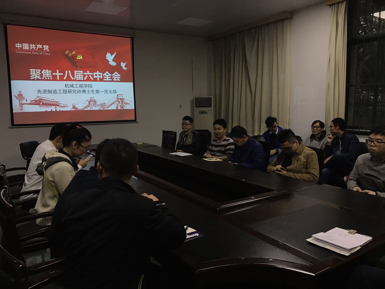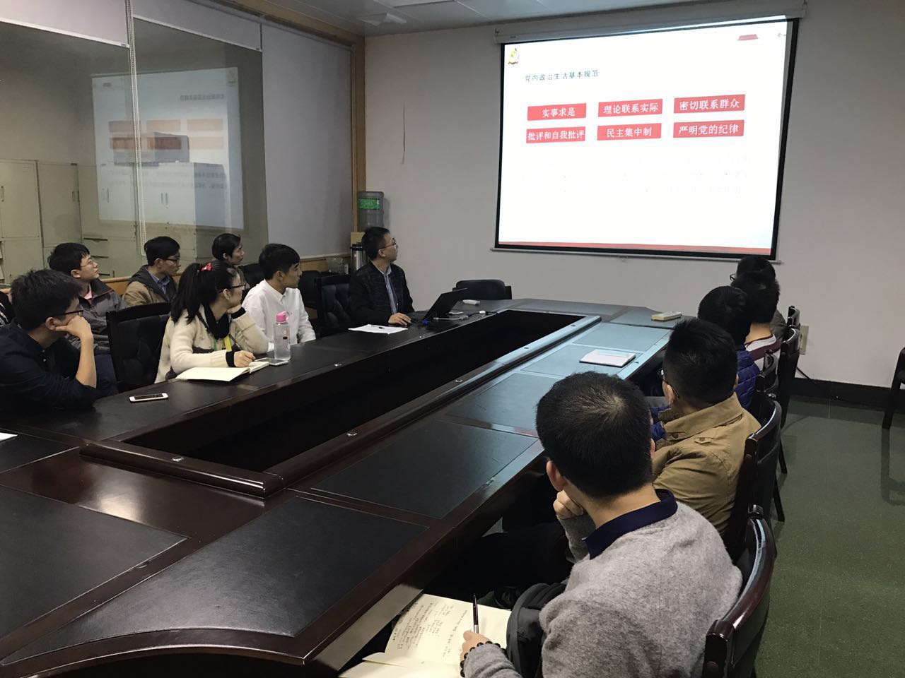 下午4时30分,会议在教一103准时开始,首先由支部副书记冯嘉炜同志介绍了本次会议的主题,给大家介绍了六中全会的历史背景,接下来带领大家学习了十八届六中全会的会议精神与主旨,重点学习了《关于新形势下党内政治生活的若干准则》和《中国共产党党内监督条例》两个重要文件,最后由党支部书记姚鑫骅老师总结发言。