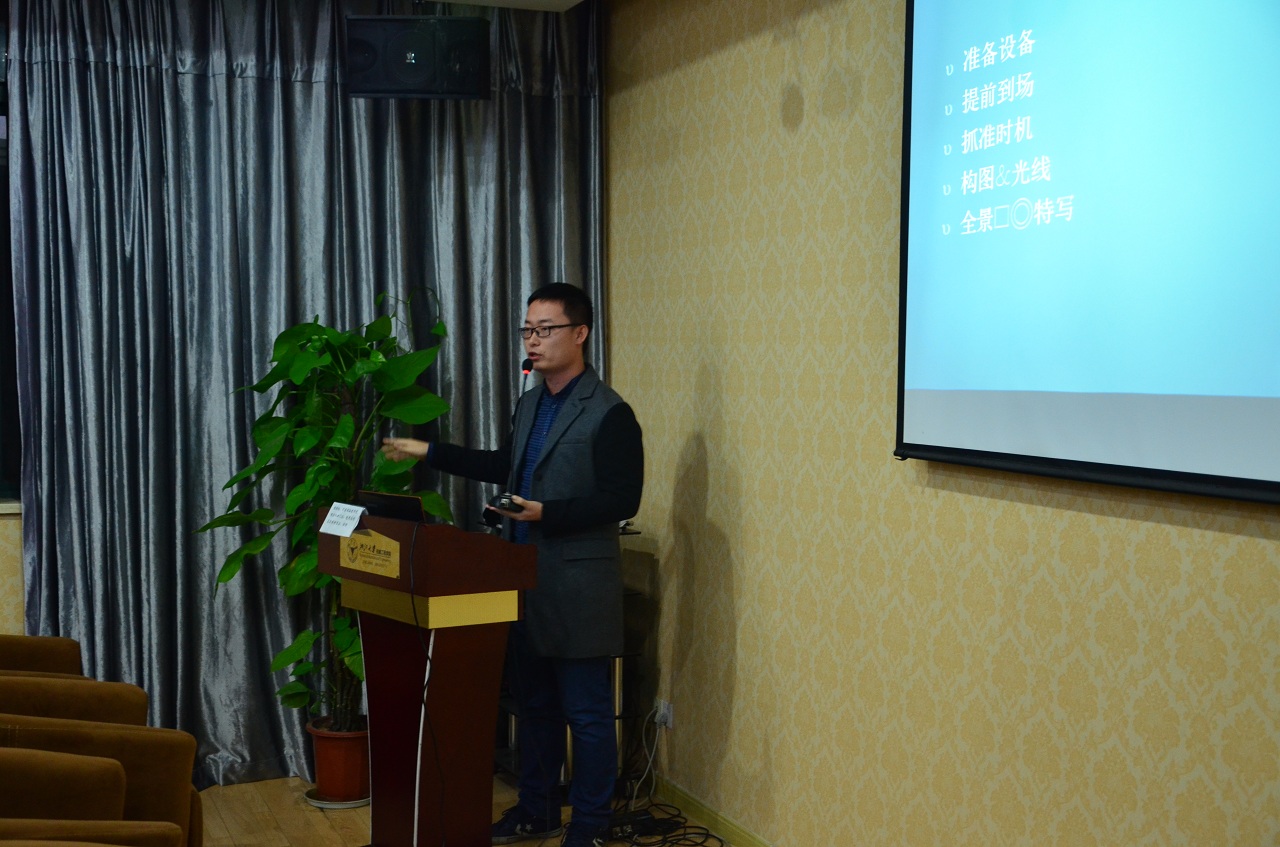 最后,机械视点新闻宣传中心部长詹俊赋以较为专业的角度讲解了图片在新闻中的重要性,并且从摄影构图技巧,相机的参数设置,拍照前的专业准备以及对被拍人的心理状态捕捉等方面详细介绍了作为新闻稿的图片拍摄者,如何在不同场合下都能拍出让人眼前一亮的好照片,好作品。“一幅好的图片作品是作者充分利用光线,来突出自身想要表达的主题,捕捉生活,定格美丽”,擅长拍摄自然风景的詹俊赋说道。