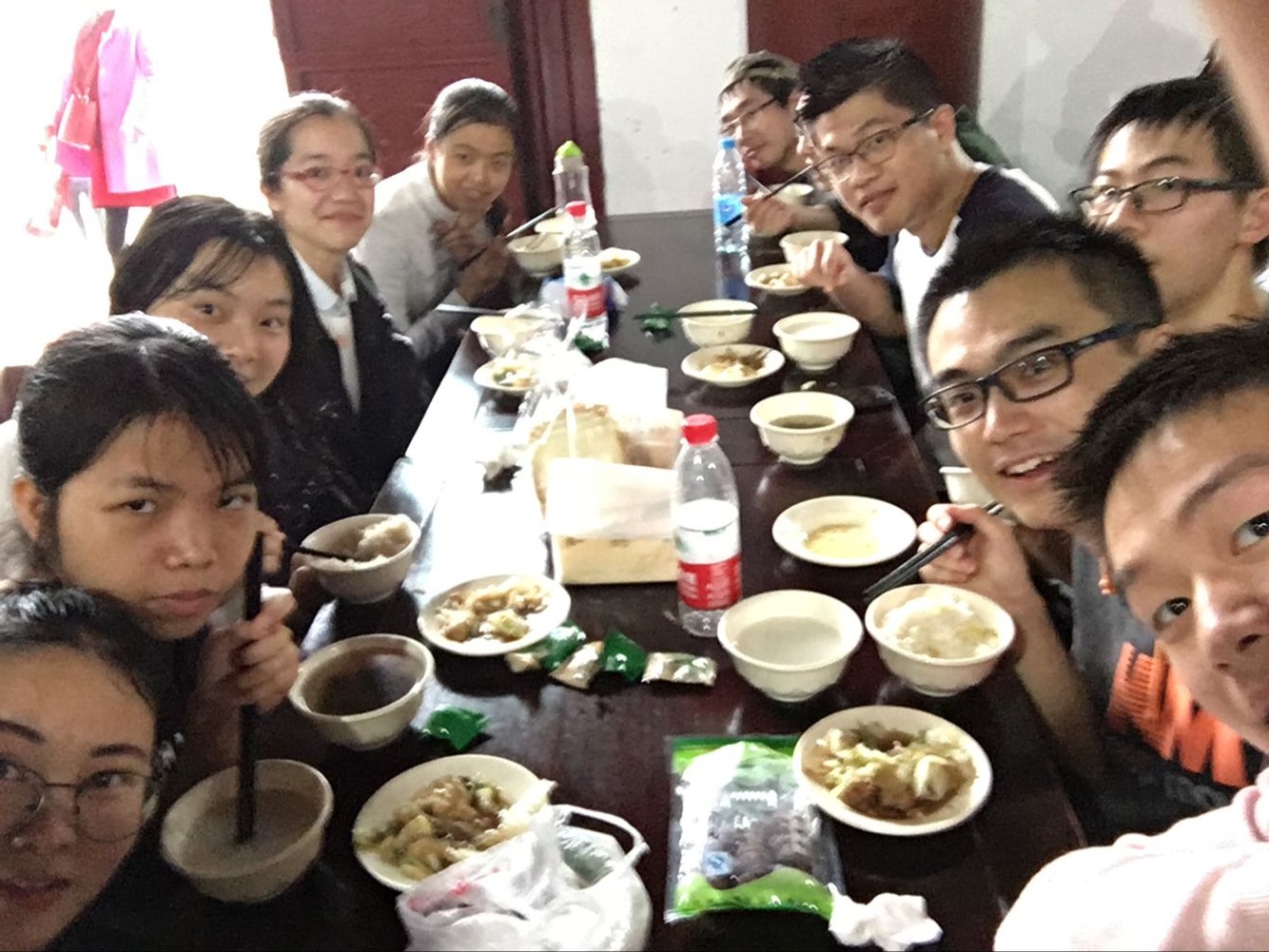 下半程相对来说比较好走,来到龙井村,同学们看见村里的一处健身场地,玩心大起,开心地在健身场地上玩耍起来。毅行毕竟不是越野比赛,有景便看,有乐子就玩,这才是机电1403团支部的毅行方式。