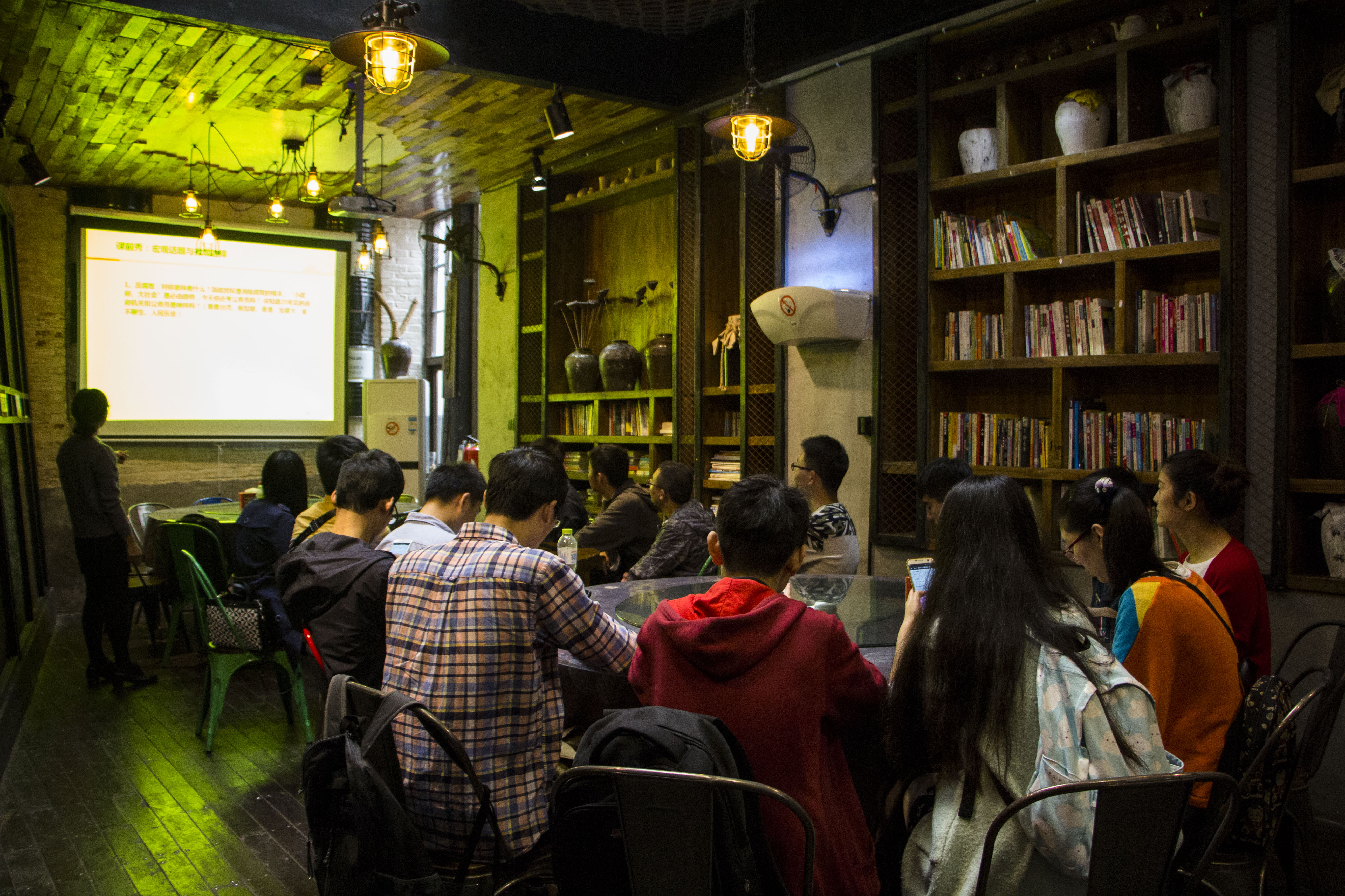 在参观完辛亥革命纪念馆之后,此次活动进入下一环节。对中国民主革命史的再认识与学习,很容易使我们联想到当今社会的发展。本次活动我们特别邀请到和君商学院的杨倩师姐向大家做了题为《中国社经大势与商业大未来》的讲座,给理工科的我们讲解了中国社会经济形势以及商业发展趋势。讲座主要包含了短期经济形势 好与坏的辨证、长期社经大势(包含结构转型、科技创新、世界格局、资本浪潮、社会重建五个方面)、商业与职业的大势逻辑(大势—行业—企业—个人)。亚投行、一带一路等热点话题不时出现在屏幕上激起大家的热烈讨论,科技创新谱系图大大拉近了大家专业与社会经济学间的距离,小米、亚马逊等商业巨头的发展历程以及商业发展趋势开启了大家对未来职业的思考大门。