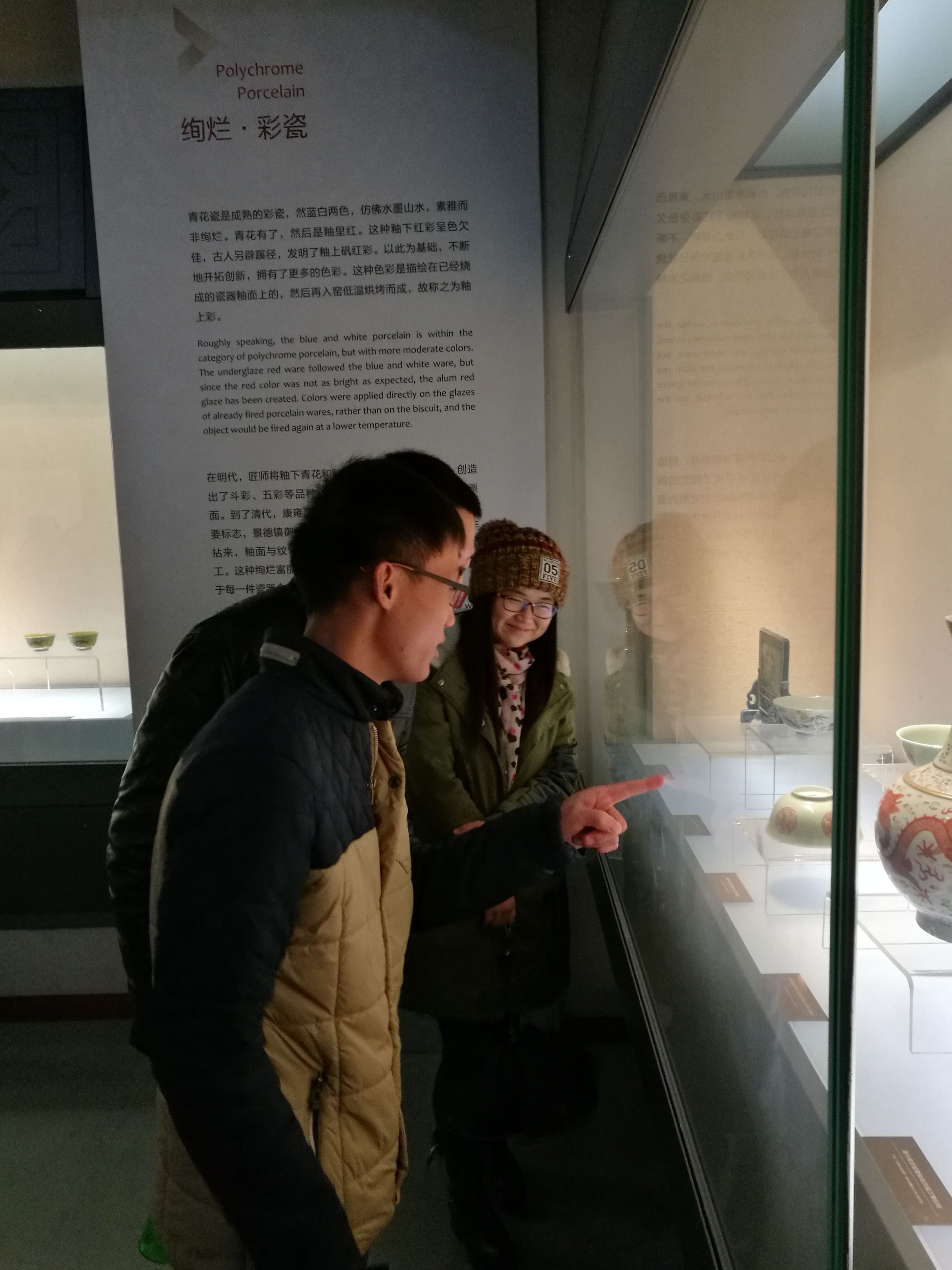 在博物馆门前合影留念后,大家便开始有序参观。孤山馆区主要由主楼、浙江西湖美术馆和皇家藏书楼文澜阁组成。主楼主要有三层,设有陶瓷馆、青瓷馆、漆器馆等展馆。一楼主要展出一些陶器,二楼主要是一些越窑瓷、龙泉瓷等,三楼是明清以后或更加晚期一些的瓷器,而且每层都有3D触摸板,可全方位地看展品。文澜阁位于馆区西侧,原是清代收藏《四库全书》的皇家藏书楼。大家被博大精深的传统文化深深吸引,看得认真,不时拍照留念。