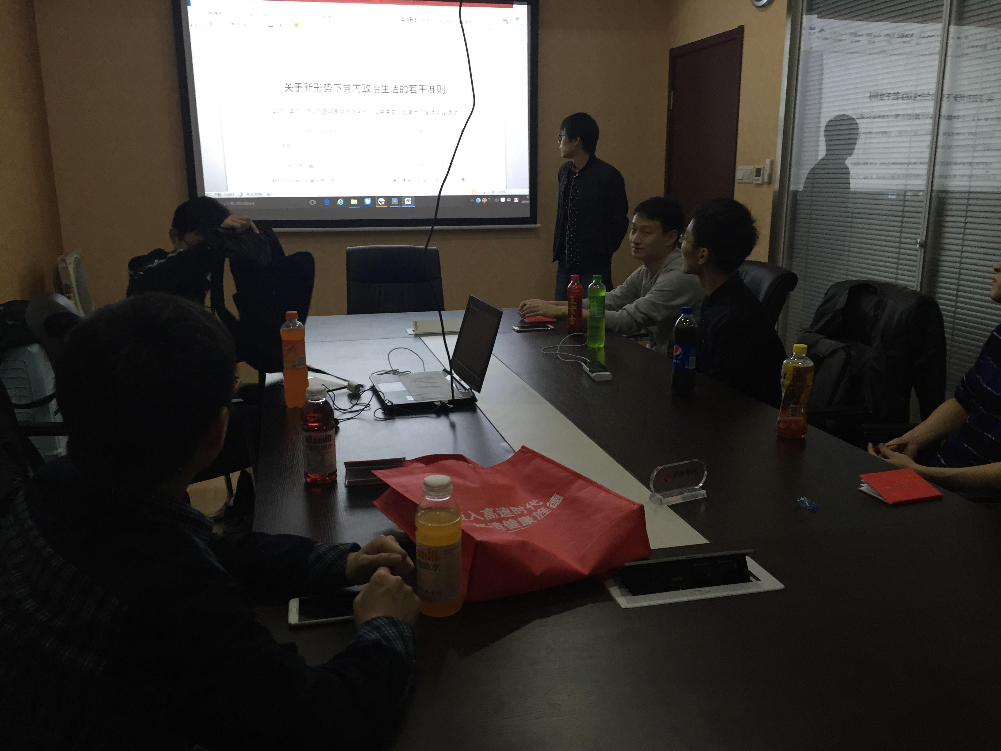 在热烈的气氛中,紧接着开展了两学一作主题学习活动。首先,党支部支书陈烨同学进行了关于两学一作的主题讲话,强调要真正把党的思想政治建设抓在日常、严在经常。引出两学一作的主题后,同学们纷纷分享了对于“两学一作”精神的体会。近半小时的讨论交流进一步发现了同学们在思想、组织、作风、纪律等方面存在的问题,加强了同学们作为党员的先进性和纯洁性。