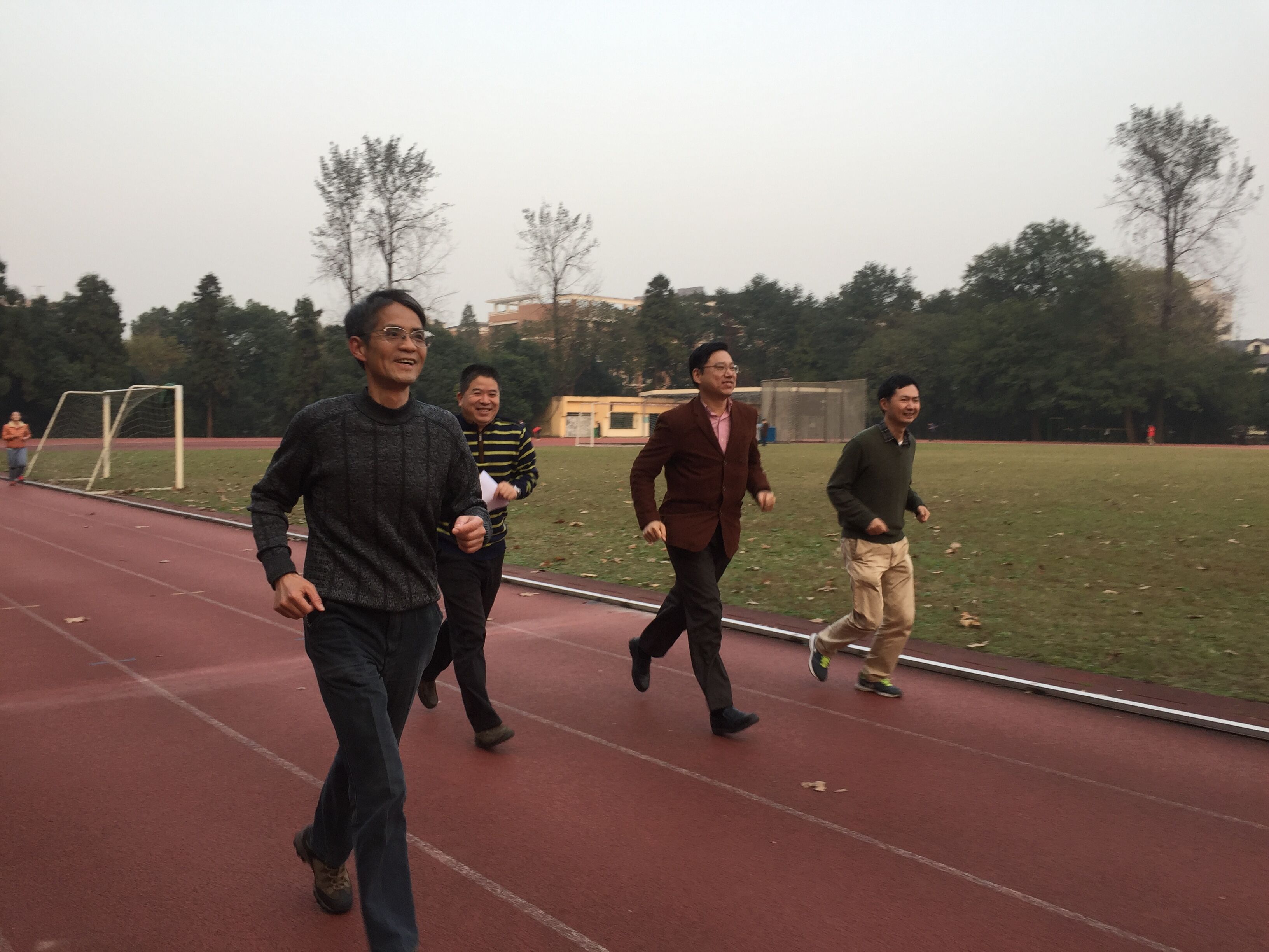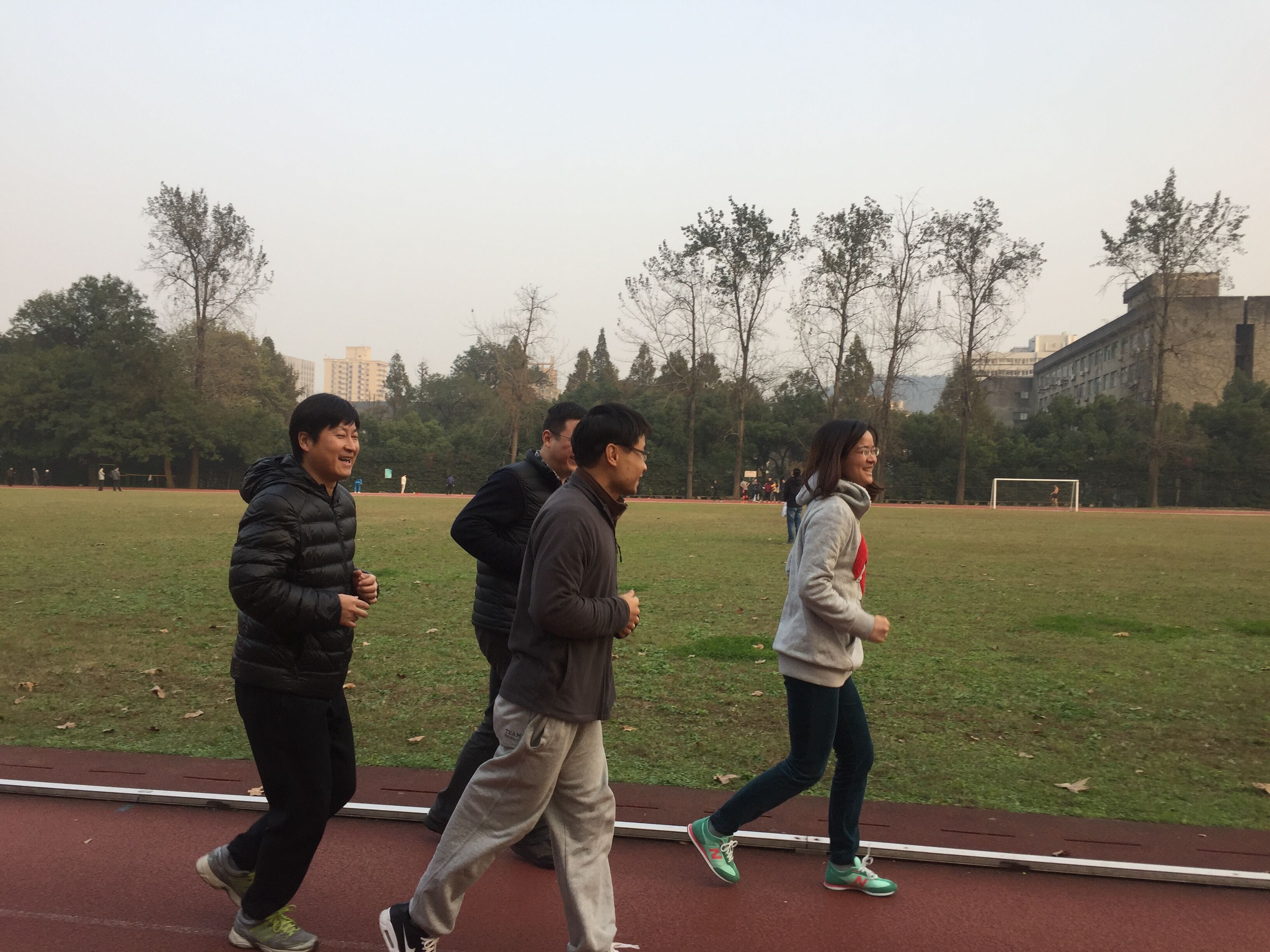 11月28日傍晚,辛苦工作了一天的老师们来到了玉泉操场,参加了由机械学院工会组织的环操场跑活动。该活动是机械学院工会组织的“冬季健身月”系列活动的第二期。考虑到老师们工作忙碌,组织本次活动的工会委员们选择了玉泉校内的大操场作为活动地点,活动要求老师慢跑2-4圈(800-1600米)或快走4圈以上(1600米~~ 上不封顶)。活动受到了老师们的积极响应,有的老师刚下完课就直奔操场,结伴慢跑;有的老师从繁忙的案头上抽出身来,舒展冬日僵硬的身躯;有的老师每天都会在操场锻炼,看到这次学院能把工会活动和日常健身结合起来感到十分高兴,并希望学院工会多多开展类似的活动。