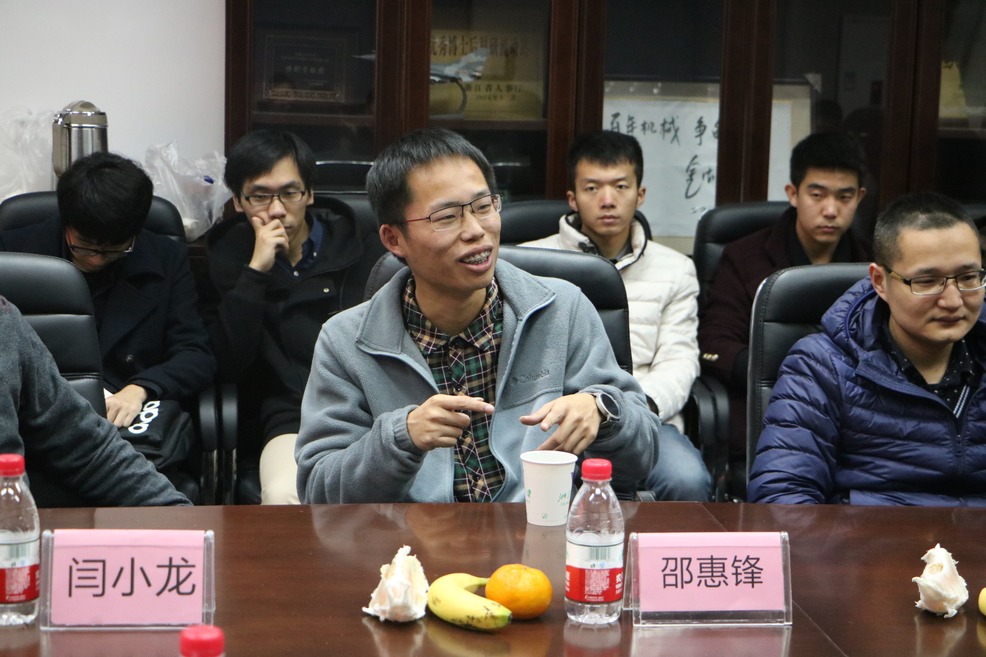 主持人介绍完毕后,邵惠峰博士首先进行了博士生涯的经验分享。他首先讲述了自己的求职经历,包括职业规划的过程、丰富自己的学识和拓宽视野、面试的技巧等方面的经验和感触,接着根据大家对于博士期间的时间规划问题的困惑,结合自己的经历讲述了博士不同阶段的任务和重点,鼓舞每一位博士生提前规划未来的出路。最后他还提醒同学们锻炼身体的重要性,劳逸结合才能凸显效率。
