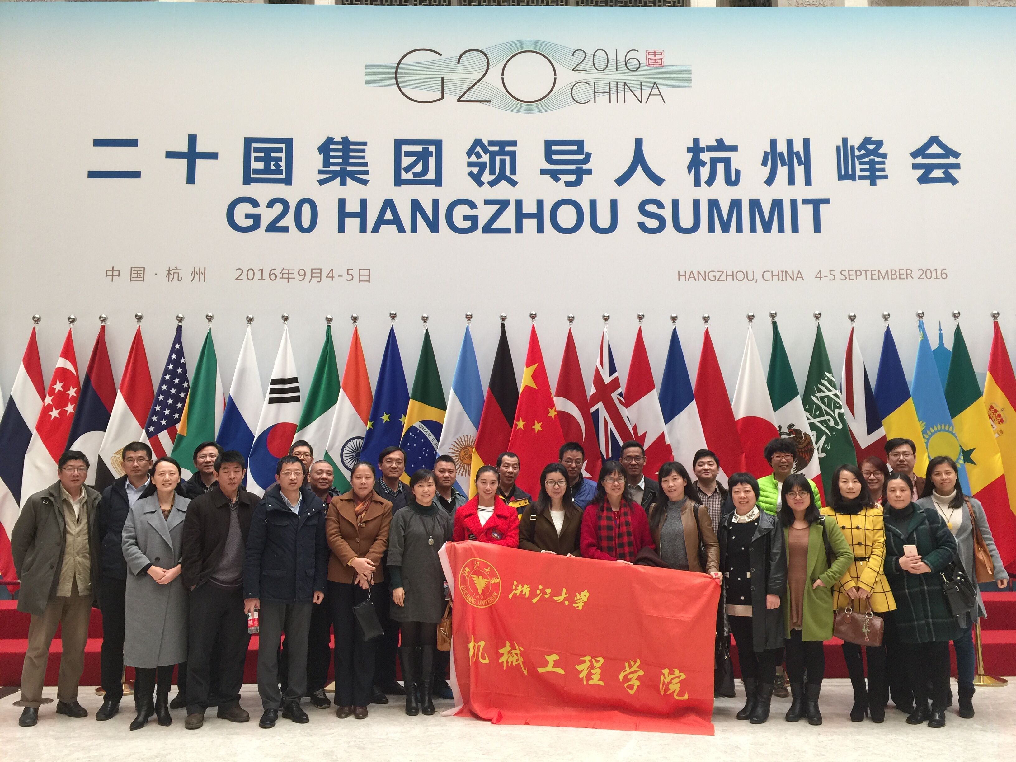 2016年12月2日下午,在机械工程学院工会的组织下,学院教职工秋游活动顺利举行。本次秋游活动的主题是“走进G20会场,感受G20风采”,学院32位教工走进了G20杭州峰会主会场——杭州国际博览中心,得以近距离感受G20峰会会场风采,感受杭州骄傲、中国感动。