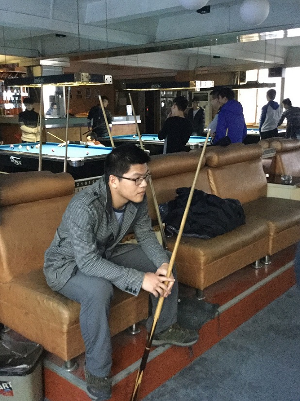 早上8点20在玉泉毛像前集合后,参赛选手一起前往比赛场地,9点半左右,台球比赛正式开始。