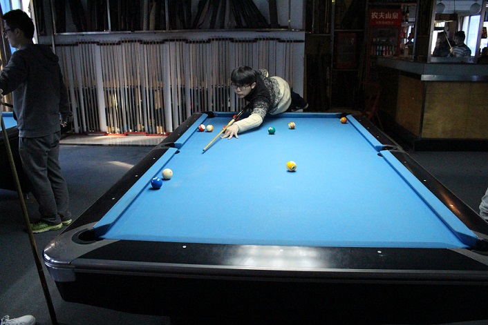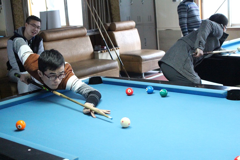 早上八点多,街上的行人稀稀落落,而选手们却已陆续到达了比赛场地。各个选手跃跃欲试,都以饱满的精神状态迎接今天的比赛。随着裁判抽签结果的确定,本次台球赛也正式开始。各位选手在自己的球桌旁试杆之后,淘汰赛阶段开始,选手们奋战在球桌上,一张一弛彰显绅士风范,一动一静尽显王者风采,各位选手精彩的球技也表现的淋漓尽致。选手表现出色,华丽的球姿,精湛的球技令在场观众不时发出阵阵叫好声。专注的表情,恰好的力道,精确的走位,严密的防守无不体现着选手们的水平,现场气氛非常活跃,不得不说,很多同学都是台球高手。最终,15名参赛同学通过激烈的角逐,产生了我们的八强选手。