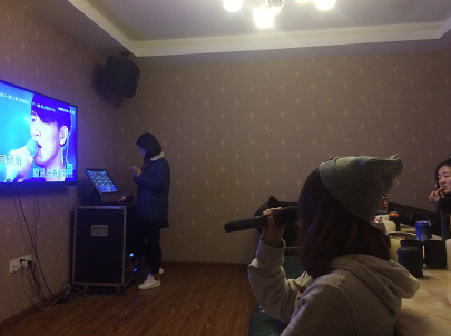 K歌时,大家忘我地欢唱。