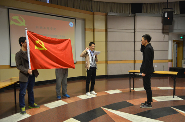 至此,议程进入了最后阶段。怀着一颗激动的心,延健磊同学庄重地宣读了入党誓词,决心为共产主义事业奋斗终生,大家对此均表示了热烈的祝贺,此次会议随之落下了帷幕。