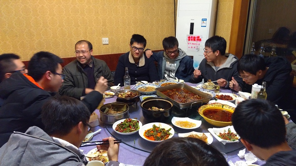 12月11日下午17:30,在班主任唐建中老师和班长罗珍雄同学的带领下,机电1403班的同学们来到了位于玉泉校区南门外青芝坞的老地方饭馆内,开始了这学期的第二次班会兼聚餐。