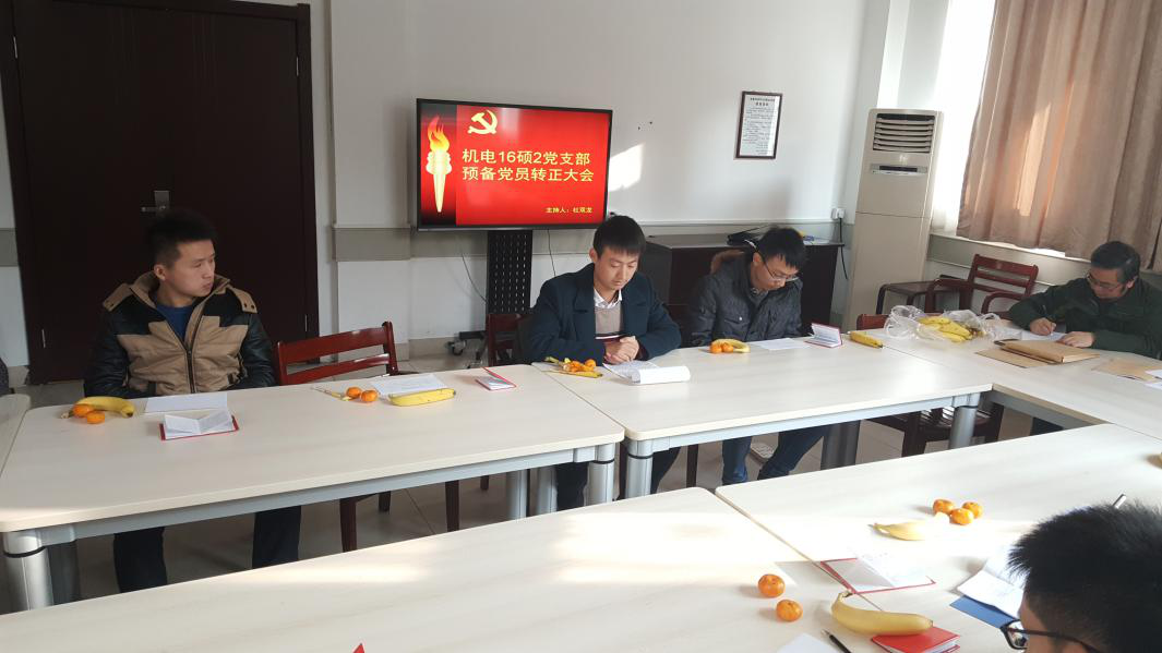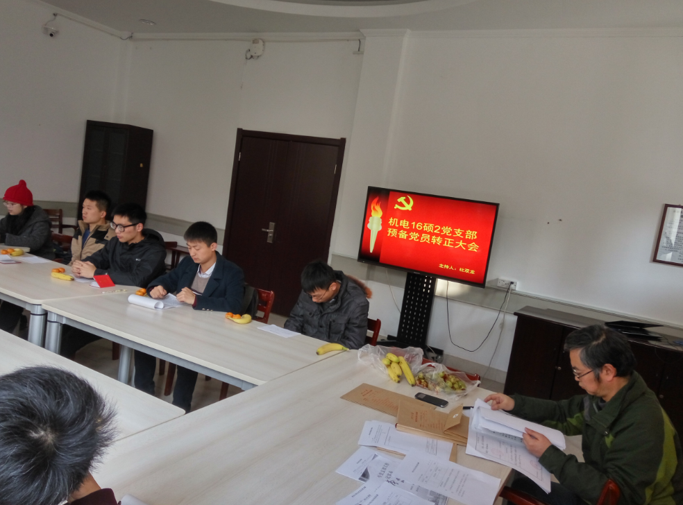 2016年12月26日下午,机电16硕2党支部于永谦活动中心成功召开了党支部转正大会兼秋学期党支部茶话会,会议取得圆满成功。