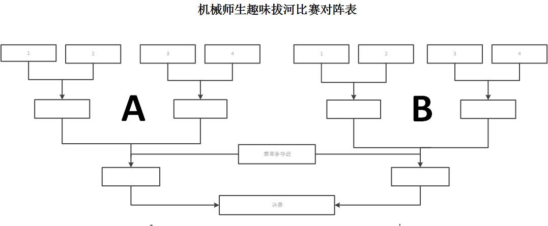 (6)小组内按照抽签顺序进行拔河比赛,各组的第一将进入决赛争夺冠亚军,各组第二争夺第三名。