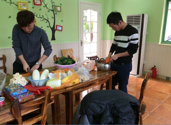 周日寒冷的大清早,本着为人民服务的原则,几个老党员舍弃了睡觉的时间,在胡芬同学的带领下赶去玉泉校区附近的外东山弄的菜市场买菜。我们精挑细选了新鲜的食材、饮料和餐具,为接下来的日租活动做了充分的准备。