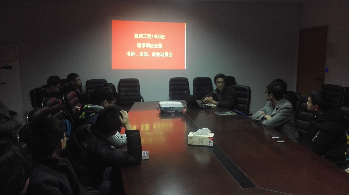 2月26日晚上18:30,机械工程1403班在教一4楼会议室举办了新学期班会。本次班会以“明确方向,设定目标”为主题,主要包括以下三个内容: