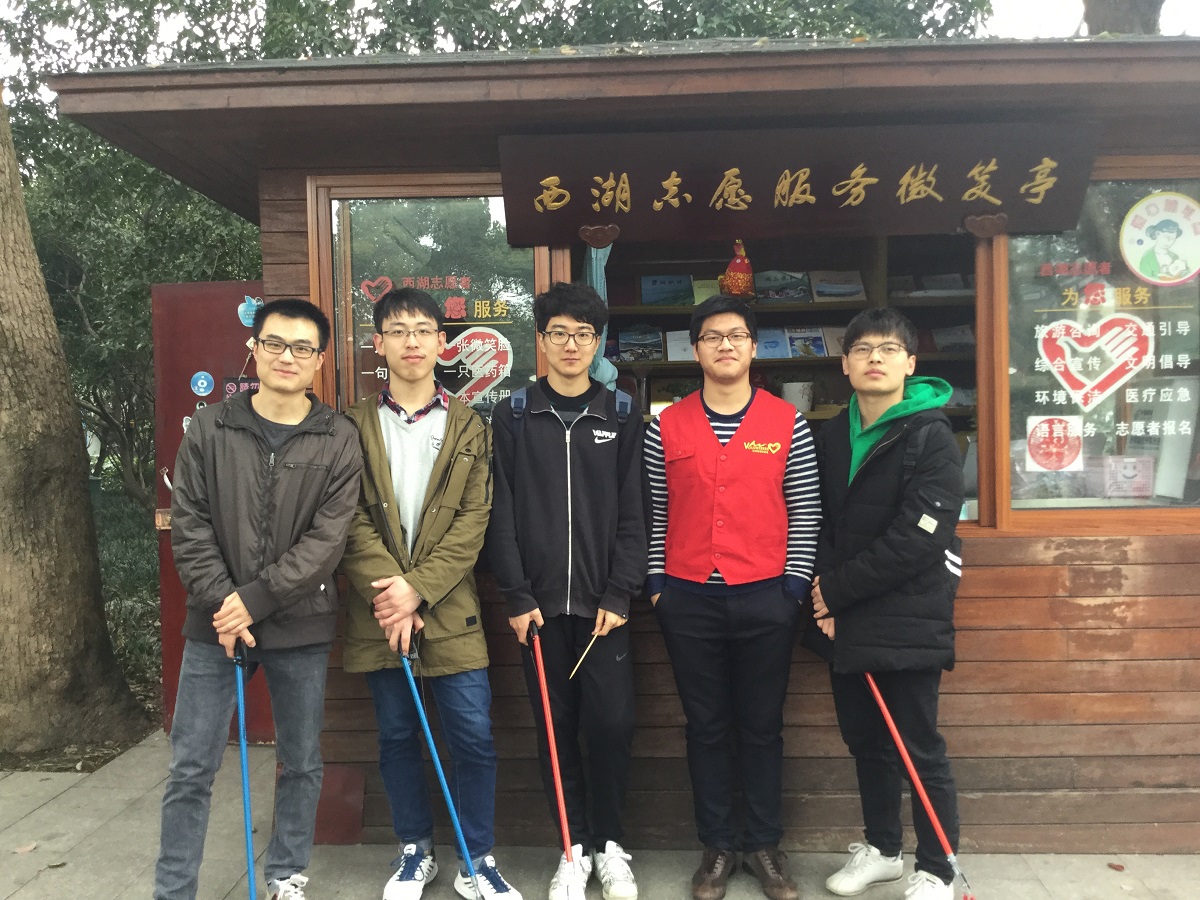 早上7点半,全体队员在玉泉五舍门口集合签到,领取了夹子、垃圾袋和其他物品,出发前往宝石山。